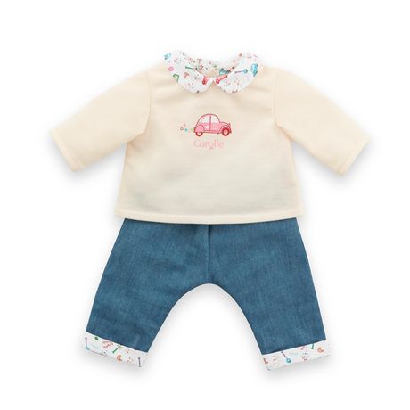 Pour une tenue décontractée, l'ensemble T-shirt Manches Longues et Jean Week-end à Paris est le vêtement idéal pour les grands poupons de 36 cm mon grand poupon Corolle.Cette tenue, qui allie douceur et praticité, se compose d'un t-shirt crème manches longues avec une illustration d'une voiture 4L e