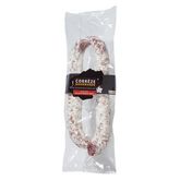 Ingrédients : Viande de porc, sel, LACTOSE, épices, dextrose, sucre, ail, conservateurs : nitrate de potassium et nitrite de sodium ; ferments. Boyau naturel de porc. Poudre de fleurage : amidon de riz.