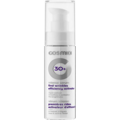 COSMIA sérum intense 30+ premières rides activateur d'efficacité tous types de peaux 30ml La gamme de soin "Premières rides 30+" a été spécialement conçue pour combattre les premiers signes de vieillissement cutané. Le matin comme le soir, adoptez les bons gestes et entammez dès maintenant votre rituel beauté. Ce sérum permet de lutter efficacement contre le vieillissement cutané en activant les cellules naturelles de la peau. Utilisé régulièrement, il redonne à la peau tout son éclat et lui donne un aspect plus lisse.