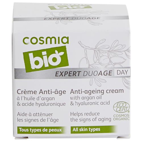 La gamme de soin visage bio EXPERT DUOAGE a été spécialement conçue pour combattre les signes de l'âge. Matin comme soir, adoptez les bons gestes et entammez dès maintenant votre rituel beauté.Cette crème de jour à l'huile d'argan et à l'acide hyaluronique nourrit votre peau et aide à atténuer les rides. Dès les premières utilisations, la peau est plus lisse. 32% du total des ingrédients sont issus de l'Agriculture Biologique. 99% du total est d'origine naturelle.COSMOS ORGANIC certifié par Ecocert Greenlife selon le référentiel COSMOS.