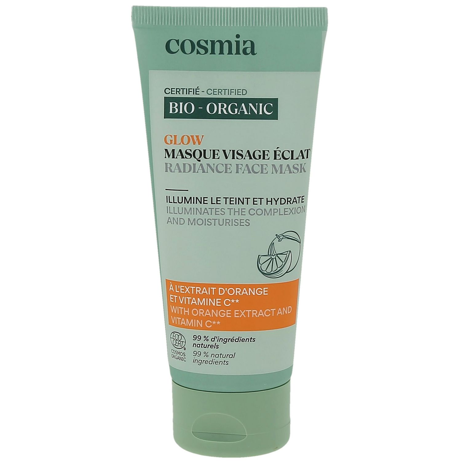 Illuminez votre peau avec le Masque Visage Éclat Cosmia !Ce masque visage, enrichi en extrait d'orange et en vitamine C, est spécialement formulé pour apporter éclat et hydratation à votre peau.Éclat et Hydratation* :Le Masque Éclat GLOW Cosmia, enrichi en Vitamine C et Extrait d'orange, apporte à votre peau hydratation et confort.Il booste l'éclat de votre teint pour une peau visiblement plus rayonnante. Ingrédients Naturels :Ce soin, à base de 99% d'ingrédients d'origine naturelle, et certifié bio, respecte votre peau sans compromis sur la qualité et l'efficacité. Sécurité de nos formules Le Masque Eclat Cosmia vous garantit une composition sûre et un choix rigoureux des ingrédients. Scannez pour découvrir sa note sur votre application de notation favorite! Votre routine éclat pour optimiser vos résultats :Etape 1 Le Masque Soin Eclat Glow Etape 2 Le Sérum Soin Eclat Glow Etape 3 Le Soin Eclat hydratant Glow et sa recharge Conseils d'utilisation: Appliquez une fine couche de produit sur le visage et le cou parfaitement nettoyés. Laisser agir de 10 à 15mn puis retirer l'excédent avec une éponge humide. A utiliser maximum 3 fois par semaine pour révéler l'éclat de votre teint. COSMOS ORGANIC certified by Ecocert Greenlife according to the COSMOS standard.*Auto-évaluation réalisée sur 20 personnes