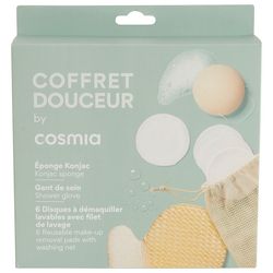 3 pièces1 éponge + 1 gant de soin + 6 disques à démaquiller