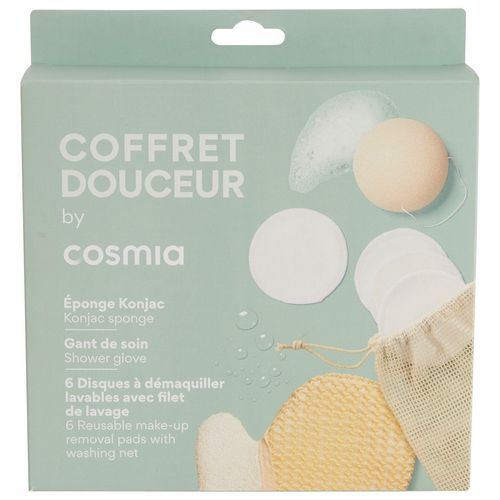 Ce coffret contient 3 accessoires fabriqués à partir d’ingrédients d’origine naturelle, indispensables pour une routine beauté zéro déchets. Une éponge konjac pour nettoyer le visage en douceur. Des disques à démaquiller lavables pour enlever le maquillage en quelques mouvements. Un gant de soin pour exfolier et nettoyer la peau en douceur.CONSEILS D'UTILISATION: Laver au savon puis sécher à l'air libre.PRÉCAUTIONS D'EMPLOI: Ne pas utiliser sur une peau abîmée ou irritée. Ne pas laver l'éponge konjac en machine. Jeter à la poubelle lorsque l'éponge commence à se désagréger