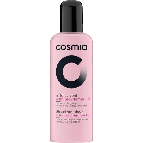 Démaquillez vos ongles tout en douceur avec ce dissolvant cosmia. Sa formule douce, sans acétone et enrichie à la provitamine B5 retire facilement toutes les traces de vernis, sans agresser et dessécher les ongles. COSMIA dissolvant doux à la provitamine B5 200 ml