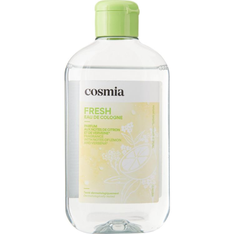 Parfumez délicatement votre peau avec cette eau de Cologne Cosmia. Intemporelle et légère, l'eau de Cologne est facile à porter. Cette version "fraîcheur" conviendra parfaitement aux hommes comme aux femmes et apportera une véritable sensation de bien-être. Fabriqué en France CONSEILS D'UTILISATION : Appliquer du bout des doigts sur le cou, le décolleté ou les poignets PRECAUTIONS D'EMPLOI : Inflammable. Eviter d’exposer le flacon à la lumière directe du soleil. Tenir hors de portée des enfants. Eviter le contact avec les yeux. En cas de contact avec les yeux, rincer abondamment à l’eau claire. Ne pas avaler.