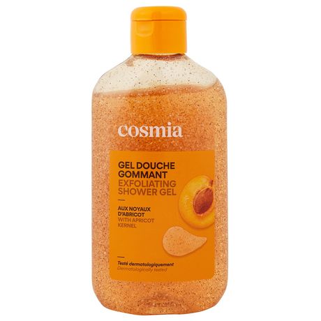 Plongez dans un monde fruité et pétillant avec le Gel Douche Gommant Cosmia aux noyaux d'abricot. Chaque douche devient un voyage sensoriel qui éveille les sens et chouchoute la peau.Parfum gourmand:Laissez-vous transporter par le parfum délicat et gourmand de l'abricot, qui embaume votre salle de bain et vous enveloppe d'une sensation de bien-être dès la première utilisation. Chaque douche devient un moment de douceur et d'évasion, où vous pouvez vous détendre et vous ressourcer en toute tranquillité.Exfoliation Douce et Naturelle :Formulé avec des noyaux d'abricot, ce gel douche gommant offre une exfoliation délicate. Profitez d'une peau exfoliée, douce et parfaitement nettoyée.Tolérance et sécurité de nos formules:Testé sous contrôle dermatologique, ce gel douche exfoliant vous garantit une composition sûre et un choix rigoureux des ingrédients. Scannez pour découvrir sa note sur votre application de notation favorite!Réduction des déchets plastiques Nos bouteilles sont fabriquées avec 50% de plastique recyclé, vous permettant d'allier bien-être et réduction des déchets plastiques.Utilisation Quotidienne: Appliquez une petite quantité de gel douche sur peau humide et massez délicatement en effectuant des mouvements circulaires. Concentrez-vous sur les zones rugueuses pour une exfoliation plus intense. Rincez abondamment à l'eau tiède.