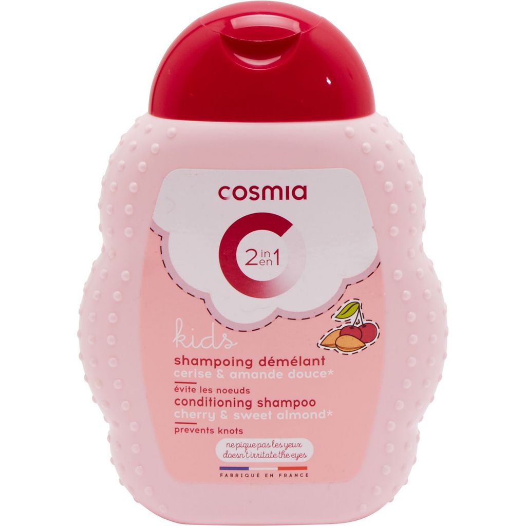 "Et si se laver devenait une partie de plaisir ? Cosmia by Auchanvous propose sa toute nouvelle gamme destinée aux enfants. Des flacons aux formes arrondies, aux couleurs acidulées et aux parfums fruités : abricot, cerise, mangue, pomme... les petits y prendront vite goût. Et parce que chez Auchan, même les produits fun sont pris au sérieux, tous nos composants sont rigoureusement testés et sélectionnés : testés sous contrôle dermatologique, ophtalmologique, non-irritants, sans paraben et ne piquent pas les yeux. Ce produit 2en1 : shampoing et démélant au doux parfum de cerise et d'amande couce est à tester sans attendre !"