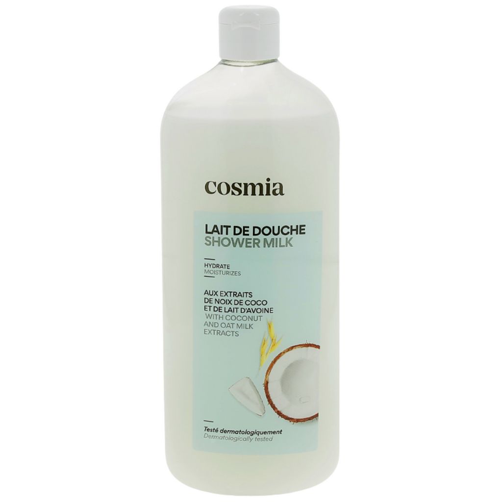Laissez vous envelopper par la douceur du Lait de Douche aux Extraits de Noix de Coco et de Lait d'Avoine Cosmia pour une peau hydratée jour après jour. Parfum Exotique et Réconfortant :Laissez-vous transporter par le parfum envoûtant de la coco et la douceur réconfortante du lait d'avoine, pour une sensation d'évasion et de bien-être à chaque douche. Votre peau est enveloppée d'un voile délicatement parfumé, vous offrant un moment de pure détente.Hydratation de la peau Ce lait de douche nettoie votre peau et l'hydrate en douceur. Naturalité et Sécurité de nos formulesLe Lait de Douche aux Extraits de Noix de Coco et de Lait d'Avoine contient 95.1% d'ingrédients d'origine naturelle.Testé sous contrôle dermatologique, ce gel douche vous garantit une composition sûre et un choix rigoureux des ingrédients. Scannez pour découvrir sa note sur votre application de notation favorite! Réduction des déchets plastiques Nos bouteilles sont fabriquées avec 50% de plastique recyclé, vous permettant d'allier bien-être et réduction des déchets plastiques.Utilisation Quotidienne :Transformez chaque douche en un moment de plaisir sensoriel. Appliquez une noix de gel douche sur votre peau humide, faites mousser délicatement, puis rincez abondamment. Sa mousse légère et onctueuse se rince facilement, pour une sensation de confort et de bien-être.