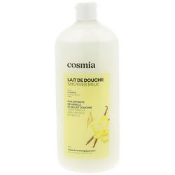 Laissez vous envelopper par la douceur du Lait de Douche aux Extraits de Vanille et de Lait d'Avoine Cosmia pour une peau hydratée jour après jour. Parfum Exotique et Réconfortant :Laissez-vous transporter par le parfum exotique de vanille et la douceur réconfortante du lait d'avoine, pour une sensation de plaisir et de bien-être à chaque douche. Votre peau est enveloppée d'un voile délicatement parfumé, vous offrant un moment de pure détente.Hydratation de la peau Ce lait de douche nettoie votre peau et l'hydrate en douceur. Naturalité et Sécurité de nos formulesLe Lait de Douche aux Extraits de Vanille et de Lait d'Avoine contient 95.9% d'ingrédients d'origine naturelle.Testé sous contrôle dermatologique, ce gel douche vous garantit une composition sûre et un choix rigoureux des ingrédients. Scannez pour découvrir sa note sur votre application de notation favorite! Réduction des déchets plastiques Nos bouteilles sont fabriquées avec 50% de plastique recyclé, vous permettant d'allier bien-être et réduction des déchets plastiques.Utilisation Quotidienne :Transformez chaque douche en un moment de plaisir sensoriel. Appliquez une noix de gel douche sur votre peau humide, faites mousser délicatement, puis rincez abondamment. Sa mousse légère et onctueuse se rince facilement, pour une sensation de confort et de bien-être.