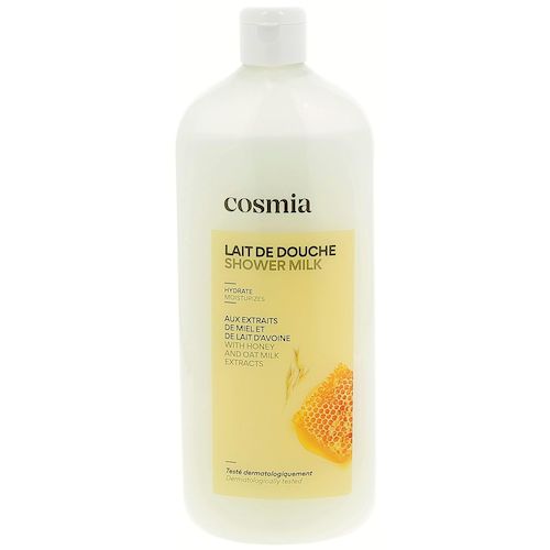 Laissez vous envelopper par la douceur du Lait de Douche aux Extraits de Miel et de Lait d'Avoine Cosmia pour une peau hydratée jour après jour. Parfum Réconfortant :Laissez-vous transporter par le parfum enveloppant de miel et la douceur réconfortante du lait d'avoine, pour une sensation de plaisir et de bien-être à chaque douche. Votre peau est enveloppée d'un voile délicatement parfumé, vous offrant un moment de pure détente.Hydratation de la peau Ce lait de douche nettoie votre peau et l'hydrate en douceur. Naturalité et Sécurité de nos formulesLe Lait de Douche aux Extraits de Miel et de Lait d'Avoine contient 95.9% d'ingrédients d'origine naturelle.Testé sous contrôle dermatologique, ce gel douche vous garantit une composition sûre et un choix rigoureux des ingrédients. Scannez pour découvrir sa note sur votre application de notation favorite! Réduction des déchets plastiques Nos bouteilles sont fabriquées avec 50% de plastique recyclé, vous permettant d'allier bien-être et réduction des déchets plastiques.Utilisation Quotidienne :Transformez chaque douche en un moment de plaisir sensoriel. Appliquez une noix de gel douche sur votre peau humide, faites mousser délicatement, puis rincez abondamment. Sa mousse légère et onctueuse se rince facilement, pour une sensation de confort et de bien-être.