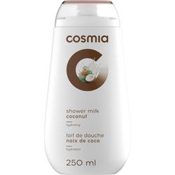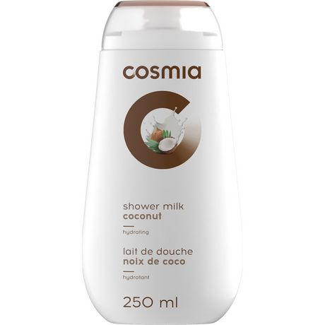 COSMIA lait de douche noix de coco 250 ml Ce lait de douche à la noix de coco nettoie délicatement votre peau tout en l'hydratant. Son parfum exotique et voluptueux fera de votre douche un véritable moment d'escapade.