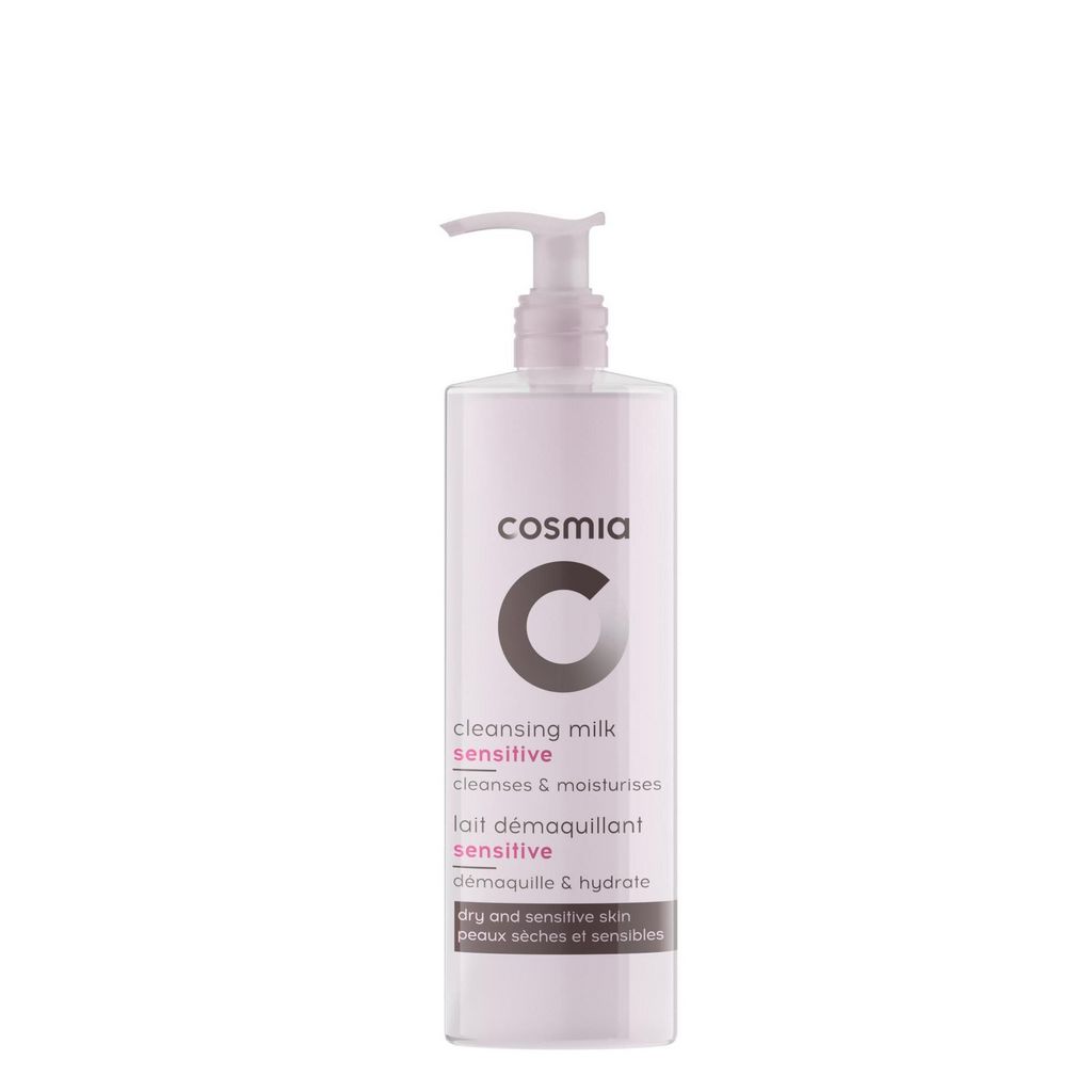 "Spécialement conçu pour les peaux sèches et sensibles, ce lait démaquillant nettoie la peau sans l'agresser. Sa formule douce aux fleurs de jasmin débarrasse la peau de ses impuretés tout en l'hydratant. Dès la première utilisation, la peau est apaisée, libérée de toute sensation de tiraillement. Elle retrouve souplesse et douceur. Testé sous contrôle dermatologique. Fabriqué en France CONSEILS D'UTILISATION : Appliquer sur le visage à l'aide d'un coton afin d'éliminer le maquillage et les impuretés..Inutile de rincer.Pour un démaquillage optimal, appliquer ensuite la lotion tonique Cosmia pour peaux sèches et sensibles.PRECAUTIONS D'EMPLOI : Ne pas appliquer sur une peau irritée ou endommagée."