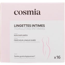 Lingettes intimes x16Non parfuméesApaisantesFraîcheur longue duréeTestées sous contrôle gynécologique