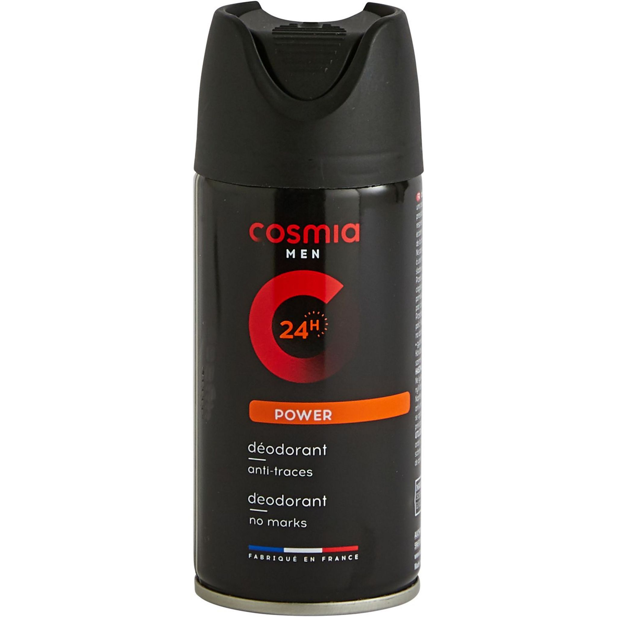 "Restez frais toute la journée avec ce déodorant spray Power Cosmia. Efficace pendant 24h, il combat les odeurs corporelles et accompagne chacun de vos mouvements d'un parfum masuculin et stimulant. Fabriqué en France CONSEILS D'UTILISATION : Ne pas utiliser sur une peau lésée, irritée ou épilée. Bien agiter avant emploi. Vaporiser à environ 20 cm des aisselles. Procéder par de brèves pulvérisations sans pulvérisation prolongée. Ne pas vaporiser vers les yeux. PRECAUTIONS D'EMPLOI : DANGER. Aérosol extrêmement inflammable. Récipient sous pression: peut éclater sous l'effet de la chaleur. Ne pas perforer, ni brûler, même après usage. Tenir hors de la porté des enfants. Tenir à l'écart de la chaleur, des surfaces chaudes, des étincelles, des flammes nues et de toute autre source d'inflammation. Ne pas fumer. Ne pas vaporiser sur une flamme nue ou sur toute autre source d'ignition. Protéger du rayonnement solaire. Ne pas exposer à une température supérieure à 50°C/122°F. Utiliser seulement dans un endroit bien ventilé. Ne pas respirer les vapeurs. "