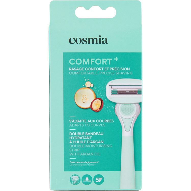 Rasoir 5 lamesA l’huile d’argan COMFORT +Double bandeau hydratantRasage confort et précisionS'adapte aux courbes