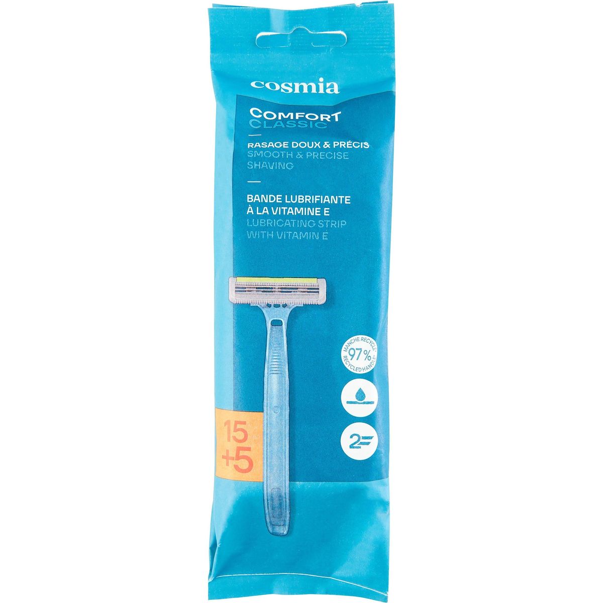 Rasoirs jetables 2 lames bande lubrifiante à la vitamine E