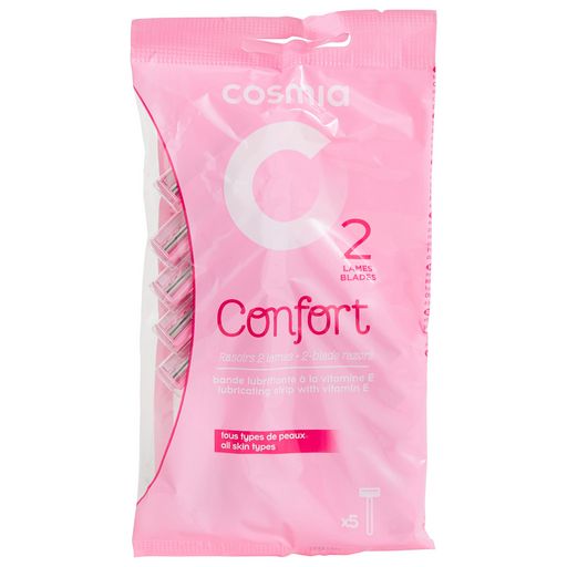 Offrez vous un rasage précis et confortable avec le rasoir jetable Cosmia. Conçu spécialement pour répondre aux besoins spécifiques du rasage féminin, ce rasoir bi-lames comporte une bande lubrifiante au thé vert qui facilite la glisse de la lame sur la peau.