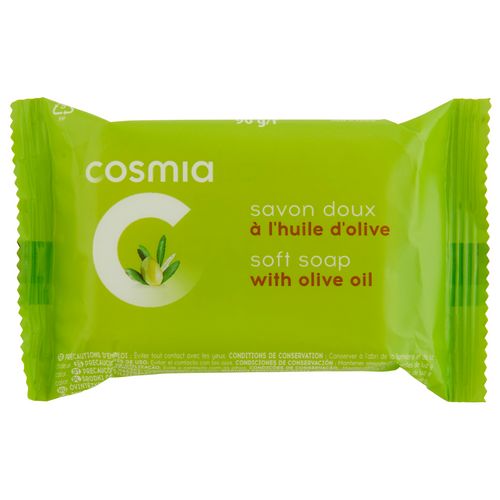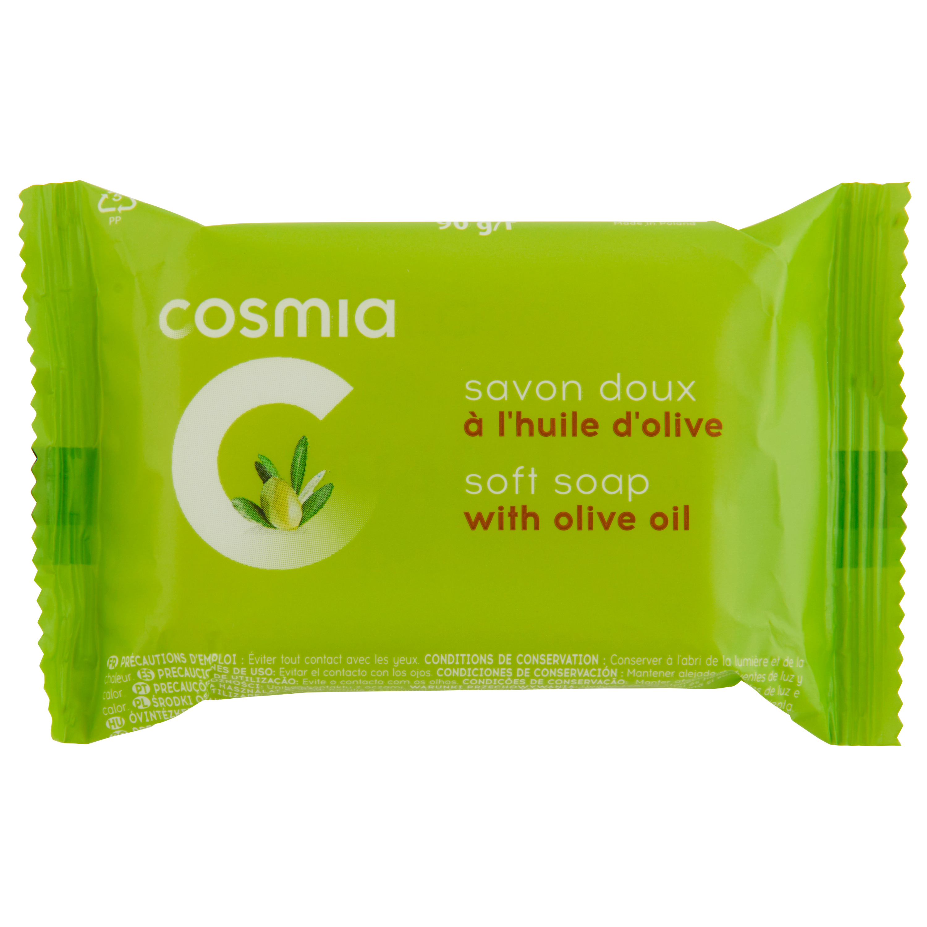 Ce savon doux Cosmia deviendra vite un incontournable de votre salle de bain ! Sa formule enrichie en huile d'olive lave la peau en douceur et convient parfaitement à tous les types de peaux. Fabriqué en Europe