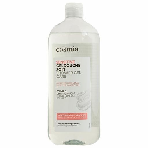 "Offrez-vous un véritable moment de douceur et de confort avec le Gel Douche Soin Sensitive Cosmia, spécialement formulé pour les peaux sensibles et réactives.Dermo ProtectionGrâce à son pH neutre, le Gel Douche Soin Protection Cosmia nettoie votre peau en douceur. Tolérance Optimale et Sécurité Testé sous contrôle dermatologique, ce gel douche vous garantit une composition sûre et un choix rigoureux des ingrédients. Scannez pour découvrir sa note sur votre application de notation favorite! Réduction des déchets plastiques Nos bouteilles sont fabriquées avec 50% de plastique recyclé, vous permettant d'allier bien-être et réduction des déchets plastiques.Utilisation QuotidienneAdapté à un usage quotidien, le Gel Douche Sensitive Cosmia vous apporte confort et prend soin de votre peau. Appliquez une noisette de gel sur votre peau humide, faites mousser délicatement, puis rincez abondamment."