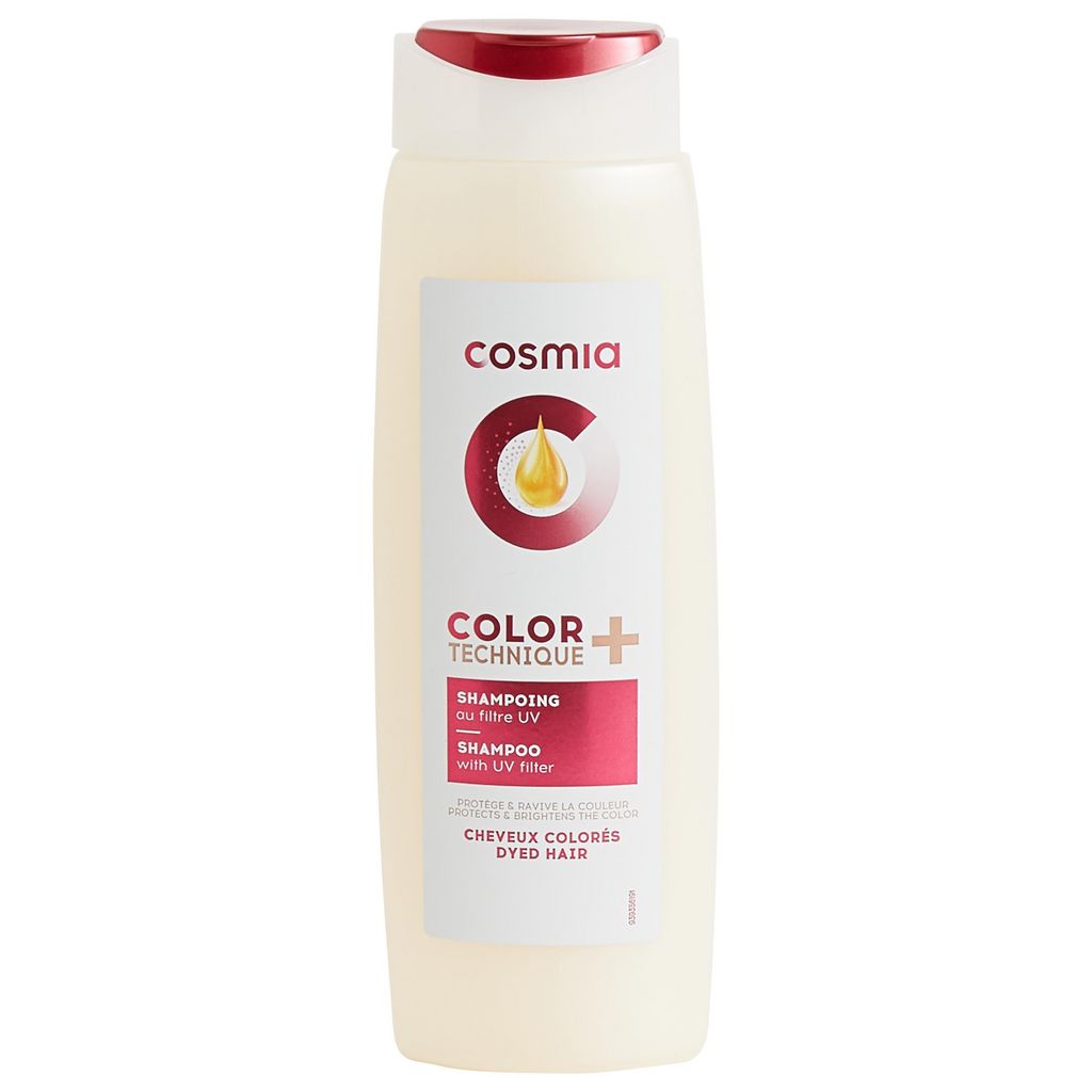 Les produits de la gamme Technique Color de Cosmia protègent et ravivent la couleur. Utilisés ensemble, ils prolongent la durée de votre coloration toute en nourrissant vos cheveux, pour un rendu brillant et soyeux.(Shampoing, après-shampoing et masque)Développée par une équipe d’experts en cosmétique, la gamme Cosmia by Auchan se jette dans le grand bain des soins capillaires techniques… et n’a rien à envier aux plus grands. Que vos cheveux soient secs, bouclés, cassants ou gras, la gamme propose des solutions adaptées. De quoi prendre soin de sa beauté capillaire, sans avoir à se faire des cheveux. Fabriqué en Europe CONSEILS D'UTILISATION :Appliquer sur cheveux mouillés, masser soigneusement, puis rincer abondamment. PRECAUTIONS D'EMPLOI :Eviter le contact avec les yeux.En cas de contact avec les yeux, rincer abondamment à l'eau claire.Ne pas ingérer .Tenir hors de portée des enfants."