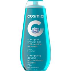 "Ce gel douche - shampoing ravira les plus pressés ! Sa formule ""2 en 1"" , idéale pour se laver d'un seul geste, respecte votre peau et vos cheveux, tout en offrant un agréable parfum marin vivifiant. Et grâce à son format voyage, vous pouvez l'emmener n'importe où ! Fabriqué en France CONSEILS D'UTILISATION : Appliquer sur la peau et les cheveux mouillés en faisant mousser. Rincer à l'eau claire. PRECAUTIONS D'EMPLOI : AQUA, SODIUM LAURETH SULFATE, GLYCERIN, COCAMIDOPROPYL BETAINE, SODIUM CHLORIDE, PARFUM, SODIUM BENZOATE, CITRIC ACID, SEA SALT, POLYQUATERNIUM-7, COUMARIN, ALPHA-ISOMETHYL IONONE, CI 42090, SODIUM HYDROXIDE, CI 19140 COSMIA SHAMPOOING GEL DOUCHE 2 IN 1 MARINE MINERALS 500ML