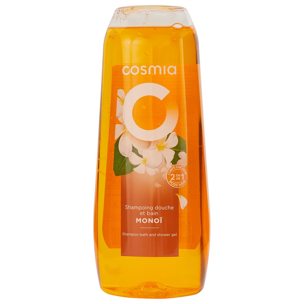 Le shampoing douche Monoï deviendra vite un incontournable de votre salle de bain. Sa formule "2 en 1" est idéale pour se laver d'un seul geste. Elle respecte votre peau et vos cheveux, tout en offrant un agréable parfum sensuel et exotique. Son format familial 750mL est plus pratique, plus écologique et plus économique. Un moment de dépaysement pour toute la famille ! COSMIA shampoing douche et bain monoï 750ml