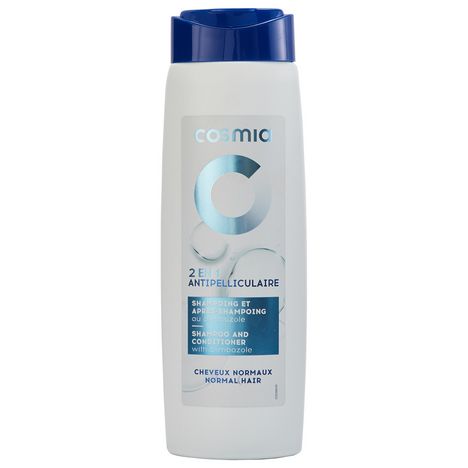 "A la pointe de l’expertise, le shampoing antipelliculaire 2 en 1 de Cosmia soulage les démangeaisons capillaires associées aux pellicules. Il nourrit le cuir chevelu et prévient l’apparition des pellicules, tout en redonnant force et brillance à vos cheveux.Existe pour cheveux à tendance grasse, cheveux normaux et cheveux secs et abîmés.Développée par une équipe d’experts en cosmétique, la gamme Cosmia by Auchan se jette dans le grand bain des soins capillaires techniques… et n’a rien à envier aux plus grands. Que vos cheveux soient secs, bouclés, cassants ou gras, la gamme propose des solutions adaptées. De quoi prendre soin de sa beauté capillaire, sans avoir à se faire des cheveux. Fabriqué en Europe CONSEILS D'UTILISATION :Appliquer sur cheveux mouillés, masser soigneusement, puis rincer abondamment. PRECAUTIONS D'EMPLOI :Eviter le contact avec les yeux.En cas de contact avec les yeux, rincer abondamment à l'eau claire.Ne pas ingérer .Tenir hors de portée des enfants."