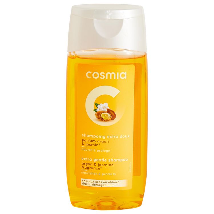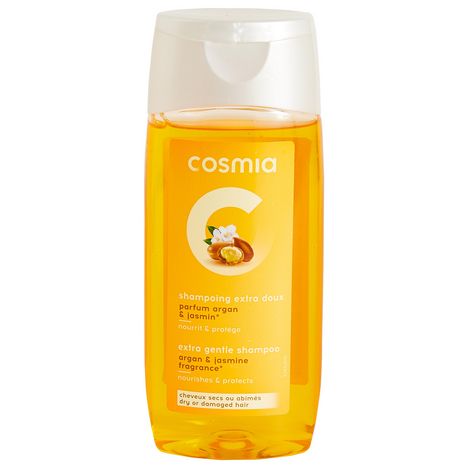 "Finis les cheveux cassants avec ce shampoing à l'huile d'argan et au jasmin de Cosmia. Sa formule légère nourrit et protège vos cheveux pour les rendre souples et brillants. Vos longueurs sont renforcées.Pour cheveux secs et abîmés. Fabriqué en Europe CONSEILS D'UTILISATION :Appliquer sur cheveux mouillés, masser soigneusement, puis rincer abondamment. PRECAUTIONS D'EMPLOI :Eviter le contact avec les yeux.En cas de contact avec les yeux, rincer abondamment à l'eau claire.Ne pas ingérer .Tenir hors de portée des enfants."