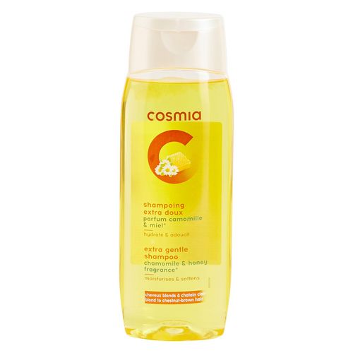 "Le shampoing à la camomille et au miel de Cosmia adoucit et hydrate vos cheveux pour les rendre brillants et soyeux. Sa texture onctueuse n'alourdit pas le cheveu et laisse un léger parfum sucré.Pour cheveux blonds à châtain clair. Fabriqué en Europe CONSEILS D'UTILISATION :Appliquer sur cheveux mouillés, masser soigneusement, puis rincer abondamment. PRECAUTIONS D'EMPLOI :Eviter le contact avec les yeux.En cas de contact avec les yeux, rincer abondamment à l'eau claire.Ne pas ingérer .Tenir hors de portée des enfants."