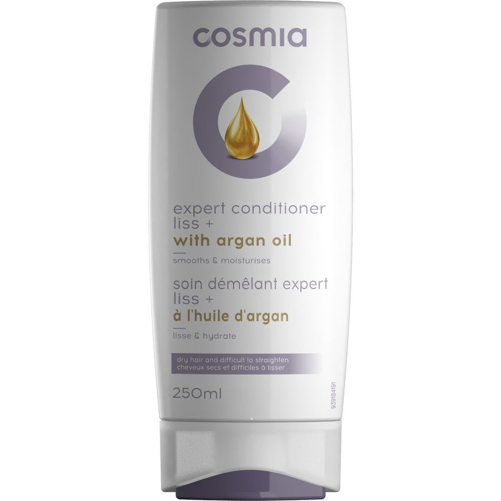 COSMIA soin démêlant expert liss + à l'huile d'argan cheveux secs ou difficiles à lisser 250 ml Pour réparer les cheveux en panne sèche et faciliter le lissage, utilisez la gamme expert Liss + de Cosmia. Rend les cheveux souples, soyeux et faciles à lisser. Evite les frisotis. (Shampoing, après-shampoing et masque) Développée par une équipe d’experts en cosmétique, la gamme Cosmia by Auchan se jette dans le grand bain des soins capillaires techniques… et n’a rien à envier aux plus grands. Que vos cheveux soient secs, bouclés, cassants ou gras, la gamme propose des solutions adaptées. De quoi prendre soin de sa beauté capillaire, sans avoir à se faire des cheveux.