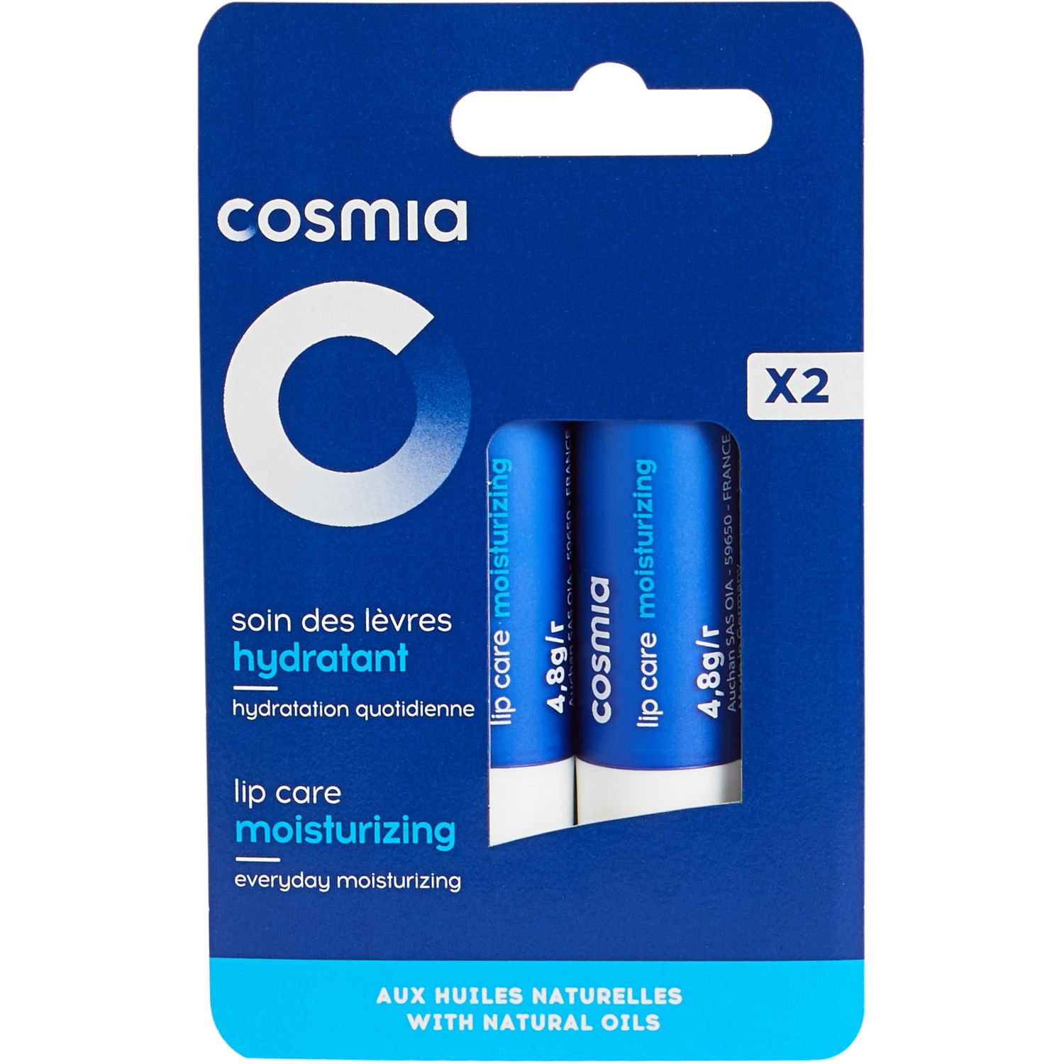 COSMIA - SOIN DES LÈVRES - HYDRATANT - LÈVRES DESSÉCHÉES ET GERCÉES - 2 X 4,2 G
