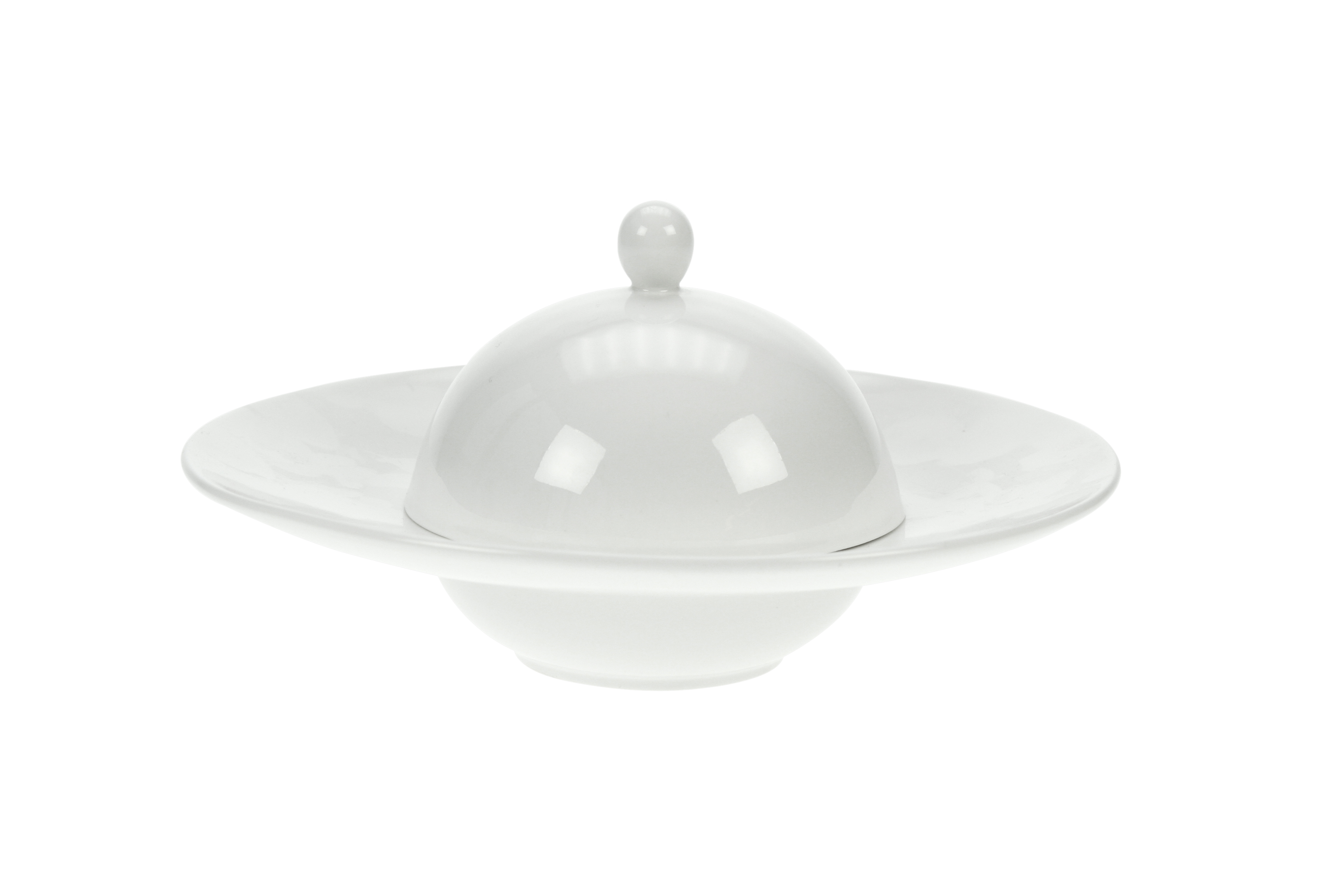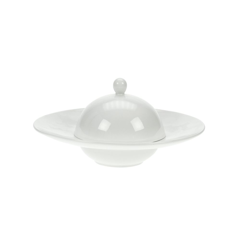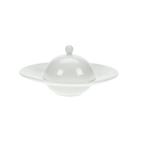 Présentez vos préparations élégamment dans cette assiette creuse accompagnée d'une cloche. Dimensions: 21,5 x 10 cm