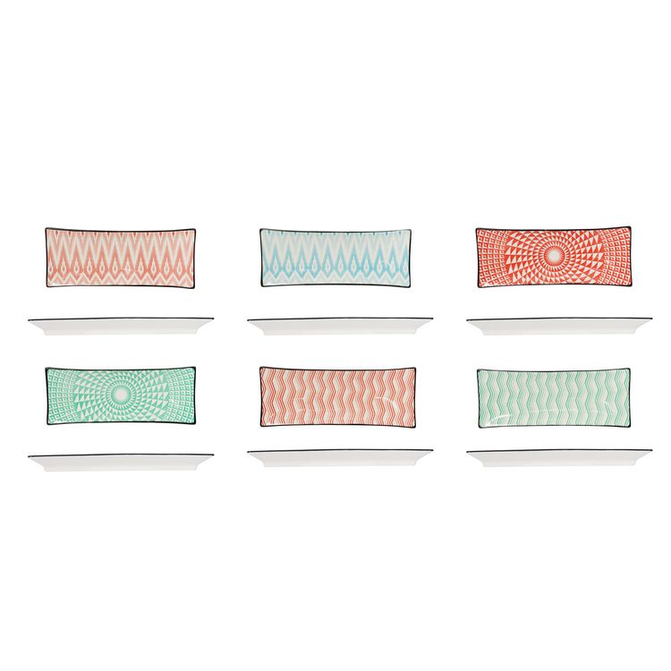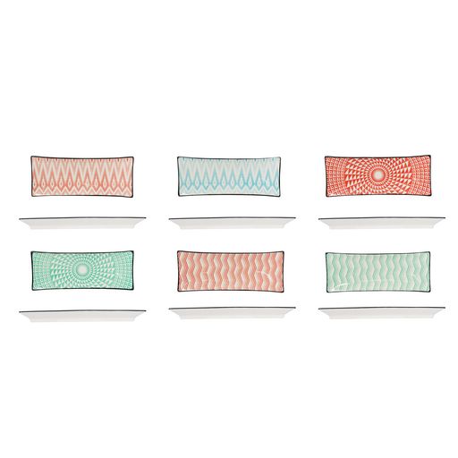Découvrez ce lot de 6 coupelles NAYANA de Cosy&Trendy, une touche d'originalité grâce à leurs formes, leurs couleurs et les micro-motifs. Dimension: 23,5 x 9,5 cm. Ces coupelles sont parfaites pour mette en valeur vos amuses-gueules.