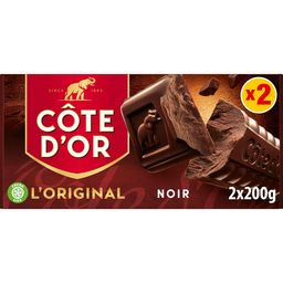 Côte d'Or Noir : Cassez une barre et savourez le goût unique et intense du chocolat noir Côte d'Or Pour un plaisir simple et authentique. Un lot de 2 tablettes Côte d'Or à déguster pour plus d'intensité. Depuis 1883, Côte d'Or sélectionne les meilleures fèves de cacao à travers le monde pour donner à son chocolat ce caractère généreux, intense et unique