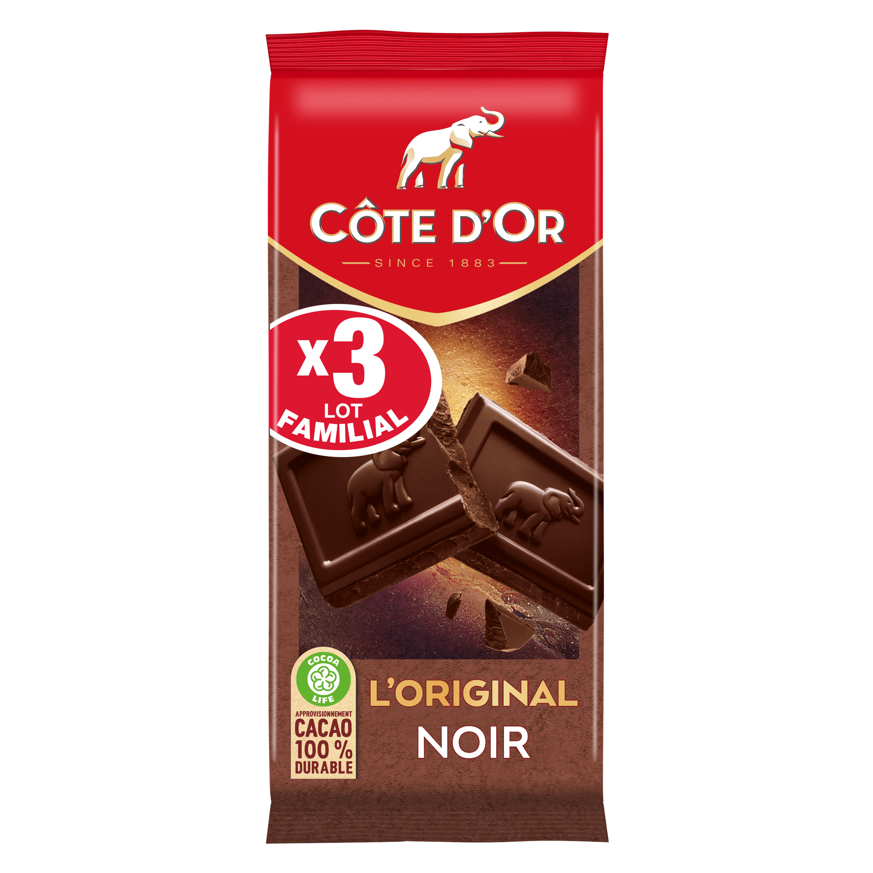 Côte d'Or Noir : Cassez un carré et savourez le goût unique et intense du chocolat noir Côte d'Or. Un lot de 3 tablettes Côte d'Or à déguster pour plus d'intensité. Depuis 1883, Côte d'Or sélectionne les meilleures fèves de cacao à travers le monde pour donner à son chocolat ce caractère généreux, intense et unique