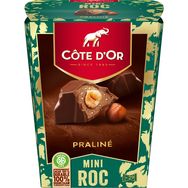 Rdécouvrez les Mini Roc Côte d'Or : de délicieuses ganaches parsemées d'éclats croustillants, enrobées de chocolat praliné avec une noisette entière croquante au cœur. Et dans un plus grand format idéal pour égayer vos fêtes de fin d'année !