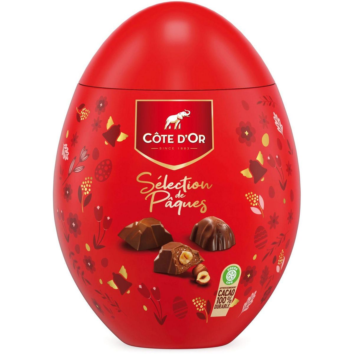Oeuf en plastique avec un assortiment de bonbons au chocolat.