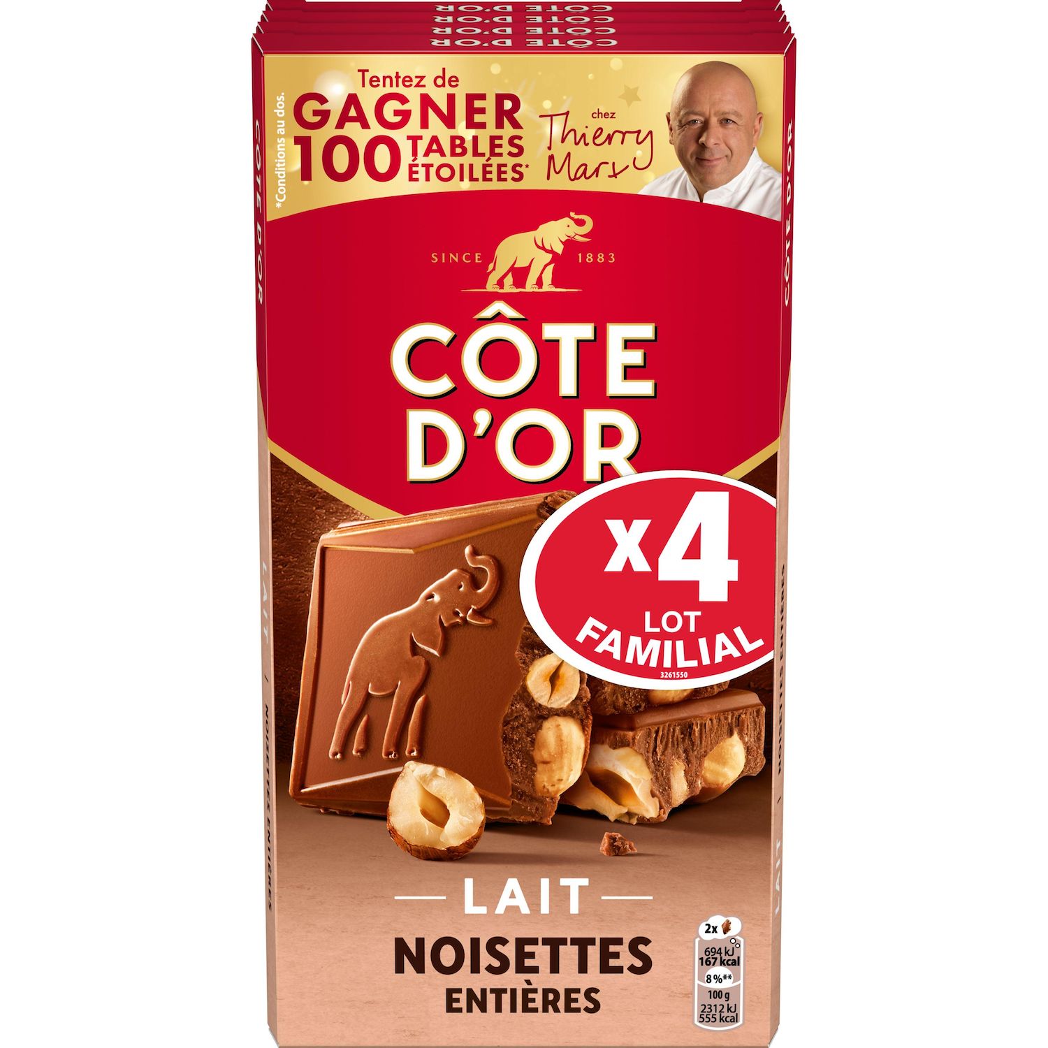 J'adore ce chocolat habituellement, mais je le trouve de plus en plus sucré ce qui lui fait baisser sa note , j'en ai trouvé un similaire meilleur à la concurrence...Par contre les noisettes y sont excellentes