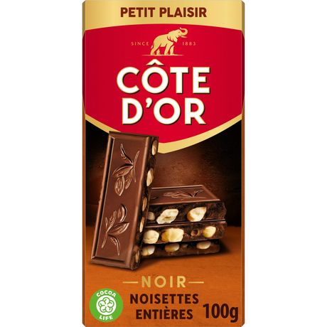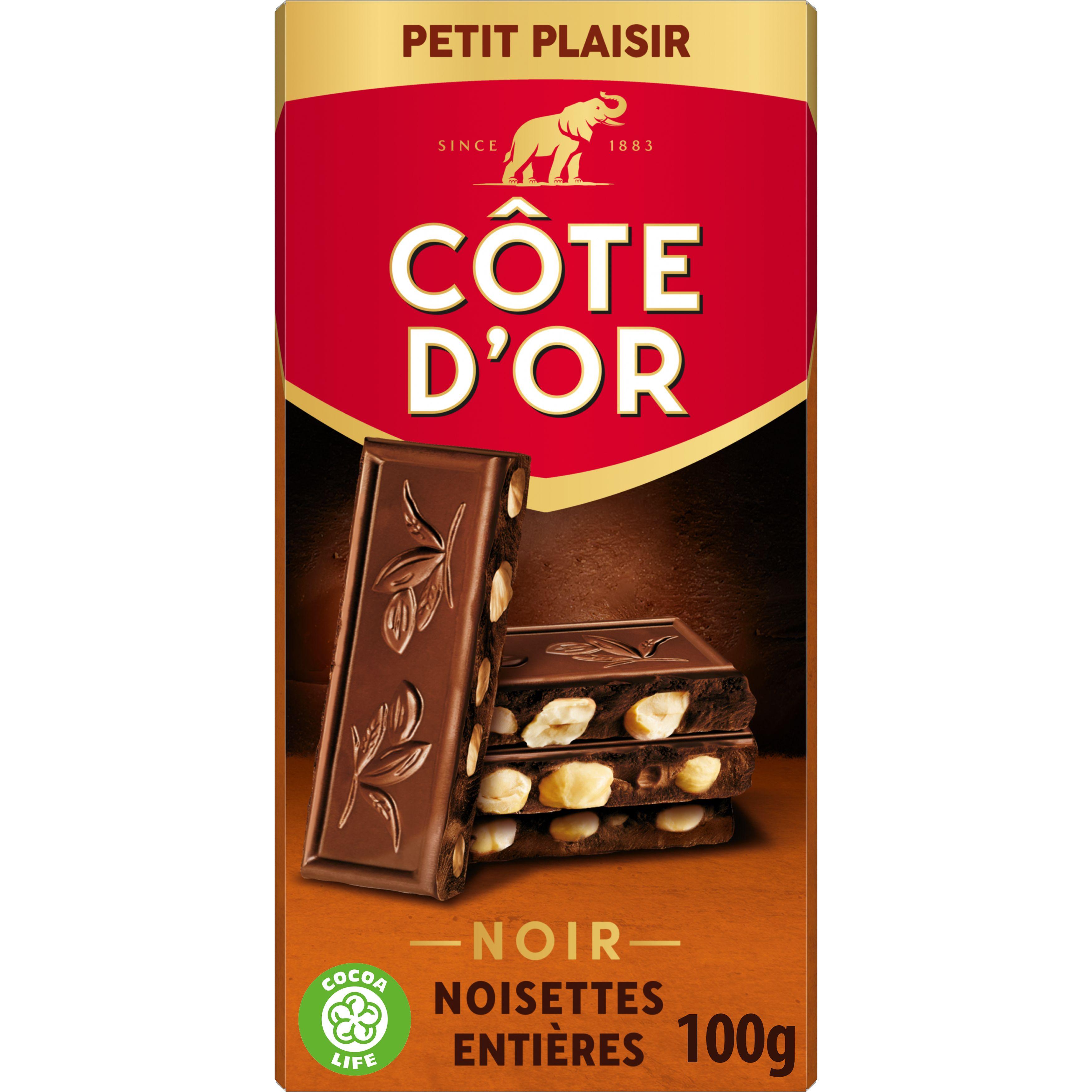 Côte d'Or Noir Noisettes : Goûtez à la puissance du chocolat noir Côte d'or allié au croquant de délicieuses noisettes entières. Un chocolat généreux pour des sensations gourmandes et intenses ! Au format petit plaisir Depuis 1883, Côte d'Or sélectionne les meilleures fèves de cacao à travers le monde pour donner à son chocolat ce caractère généreux, intense et unique