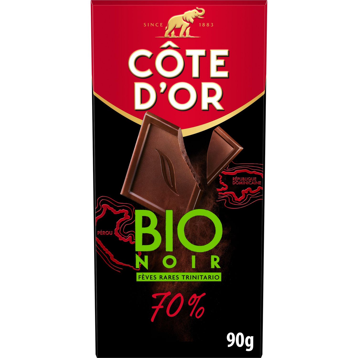 Côte d'Or Noir 70% Bio : Découvrez le chocolat noir 70% Côte d'Or bio, pour des pauses gourmandes et intenses ! Une tablette bio à déguster pour des pauses gourmandes. Depuis 1883, Côte d'Or sélectionne les meilleures fèves de cacao à travers le monde pour donner à son chocolat ce caractère généreux, intense et unique