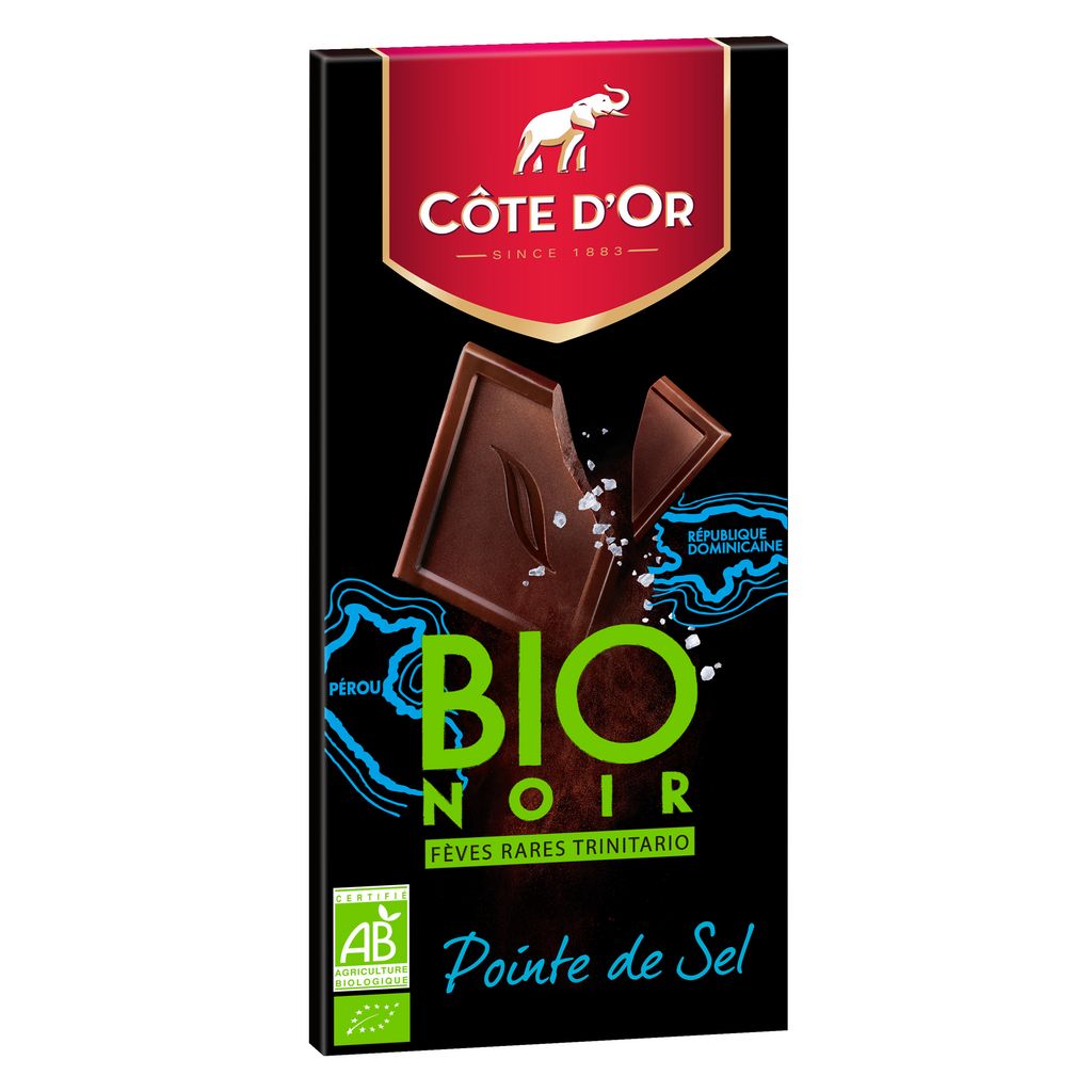 Chocolat noir issu de l'agriculture biologique avec sel de mer d’Anglesey. Découvrez toute l’intensité du chocolat noir Côte d’Or BIO. Les fèves de cacao Trinitario sont prisées pour leurs arômes puissants et riches. Le Sel d’Anglesey, parmi les meilleurs au monde, est réputé pour sa pureté et sa douceur. Côte d’Or, le plaisir à l’état brut. Une tablette bio à déguster pour des pauses gourmandes.