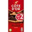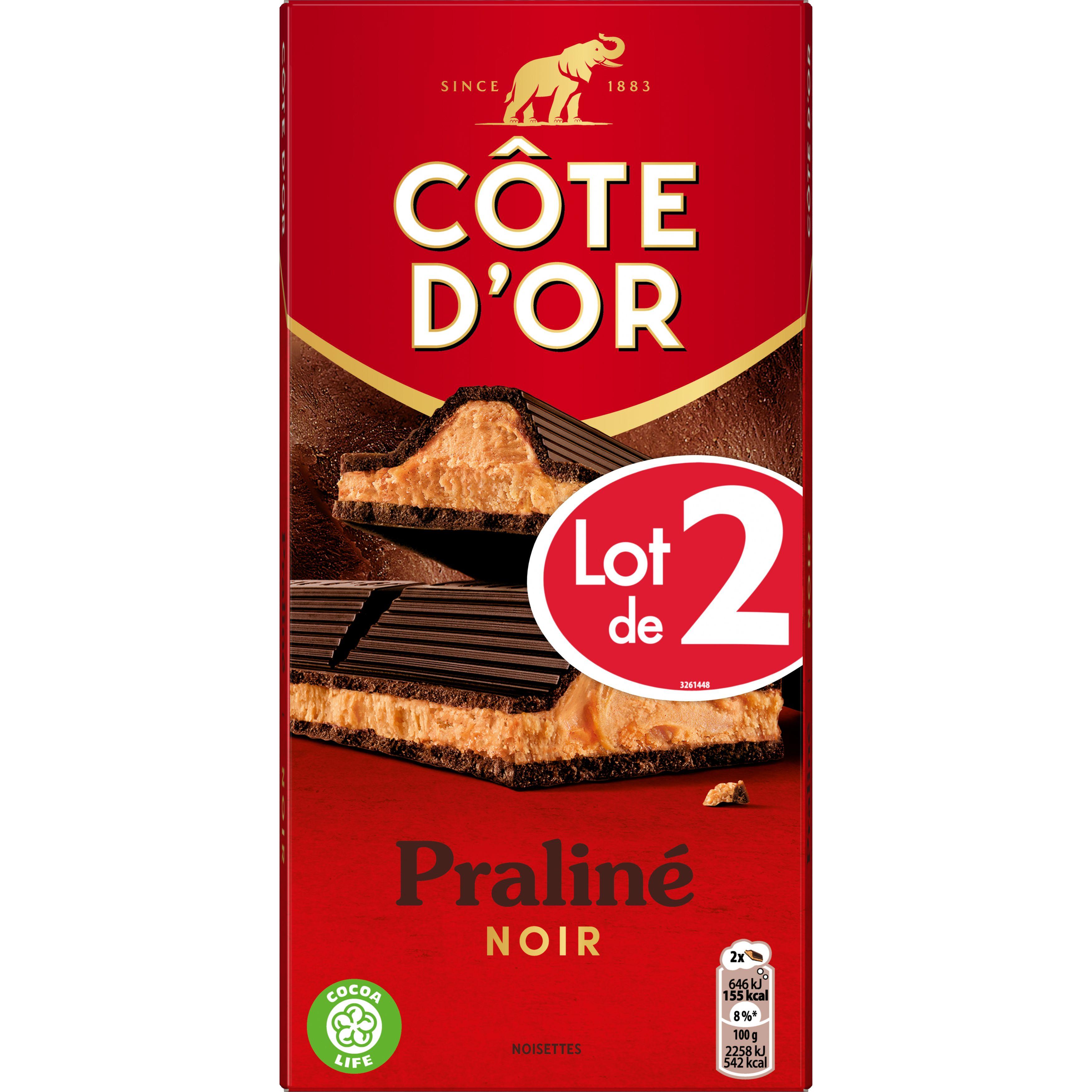 Ressentez cette double sensation entre le croquant de l'enrobage de chocolat noir Côte d'Or et le fondant du fourrage praliné intérieur au bon goût de noisettes. Lot de 2 tablettes côte d'or noir praliné