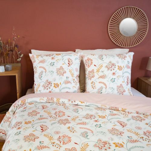 Magnifique housse de couette HISPANA au motif floral très tendance en polyester microfibre 72g/m², matière légère au toucher peau de pêche , pour lit 2 personnes. Finition boutons pressions.Cette parure de couette HISPANA contient : 1 housse de couette 240x220 cm boutons pressions et fente passe ma