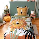 Housse de couette enfant 140x200 + 1 taie Lion avec oreilles