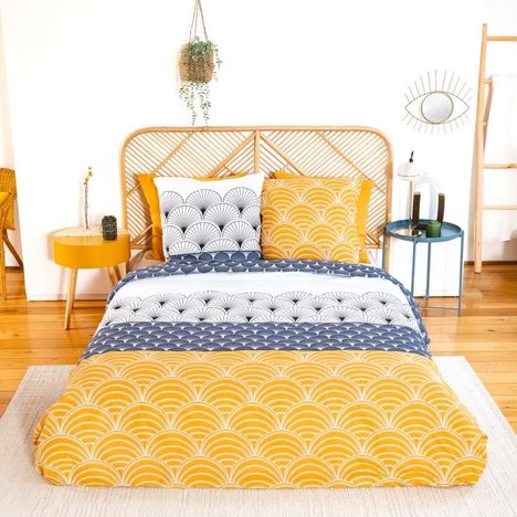 Housse de couette réversible 200x200 KERITA + 2 taies 100% coton adouci 57 fils/cm2