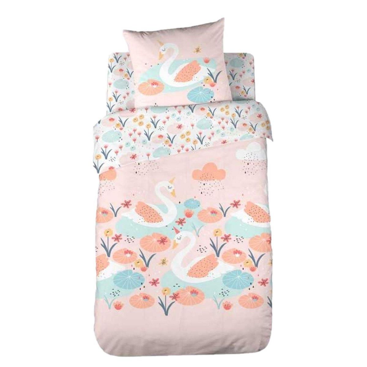 Parure de lit enfant Cygne - Coton 57 fils/cm² - 140 x 200 cm - Rose