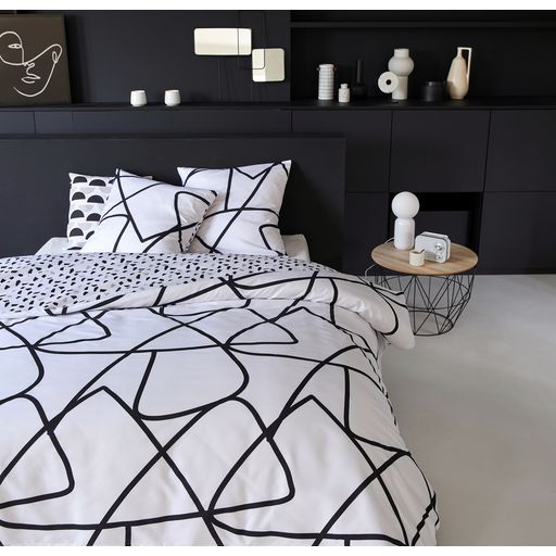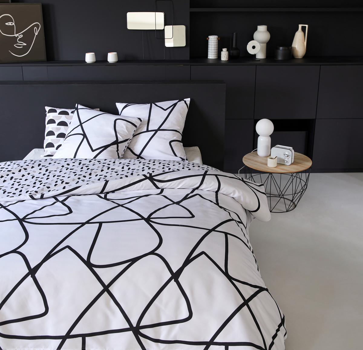 Parure housse de couette 1 ou 2 personne(s) + taie(s) d'oreiller en microfibre. Côté look, 2 motifs graphiques à mixer joyeusement (2 parures en 1 !), et le chic moderne du noir et blanc... CLASSE ! Côté matière, une microfibre légère, super douce au toucher et très confortable car respirante. Côté entretien, un séchage ultra rapide et pas de repassage. Un linge de lit qui a tout bon, à s'offrir sans modération ! Housse de couette à base droite.