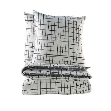 Parure housse de couette 1 ou 2 personne(s) + taie(s) d'oreiller en toile pur coton biologique tissée bien serré, super douce et confortable. Cultivé sans pesticides ni engrais chimiques, le coton bio préserve l'eau, la terre, les hommes qui le récoltent et notre peau. On dit oui... et on craque aussi pour ce linge de lit réversible (2 parures en 1 !), un brin masculin et très élégant, qui donne du style à la chambre. Housse de couette à base droite, drap-housse assorti vendu sur auchan.fr