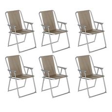 Lot de 6 Chaises de Camping Pliantes Grecia 74cm Taupe