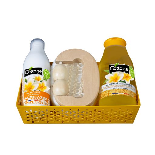 Douche Monoi : Aqua (water), Ammonium Lauryl Sulfate, Lauryl Glucoside, Glycerin, Cocamidopropyl Betaine, Parfum (Fragrance), Citric Acid, Coco-Glucoside, glyceryl Oleate, Cocos Nucifera (Coconut) Oil, PEG-40 Hydrogenated Castor Oil, Gardenia Taitensis Flower, Tocopherol, Hydrogenated Palm Glycerides Citrate, Sodium Benzoate, Benzoic Acid, Linalool, ci 19140 (Yellow 5), CI 15510 (Orange 4)